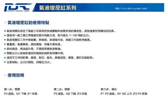 兀元自动化设备(上海)有限公司是气体增压阀、气液增压泵、液压油缸、液压系统、四柱型压机、C型压机、气密检测台等产品专业生产加工的公司,拥有完整、科学的质量管理体系。兀元自动化设备(上海)有限公司的诚信、实力和产品质量获得业界的认可。欢迎各界朋友莅临参观、指导和业务洽谈。